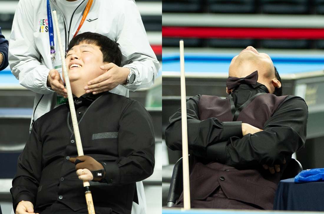 “아이고~” 한쪽은 안도감, 한쪽은 아쉬움. ‘제105회 전국체육대회’ 당구 1쿠션 준결승 마지막 이닝서 희비가 엇갈린 조명우와 허정한. 역전 드라마를 연출하며 승리한 조명우는 안도감의 얼굴을 보였고, 단 1점이 부족해 승리를 코앞에서 놓인 허정한은 고개를 뒤로 젖히며 아쉬움을 표출했다.