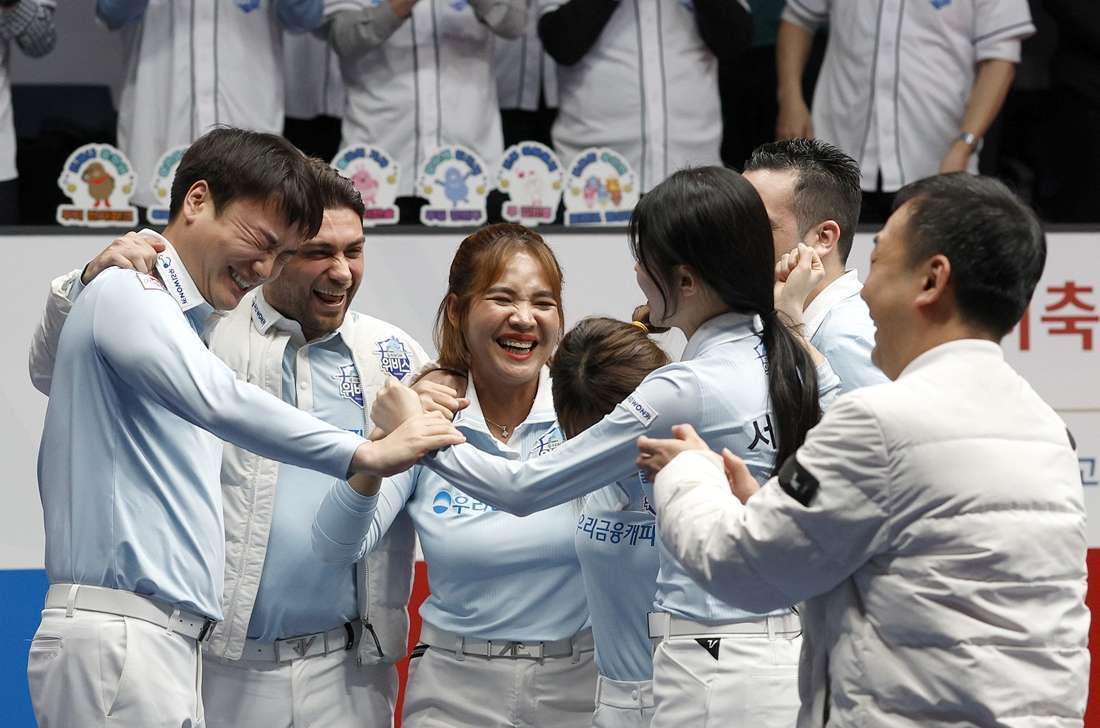 ‘2연승’ 직후의 두 경기서 숨을 고른 우리금융캐피탈이 24일 밤 9시 30분 경기 고양시 킨텍스 PBA전용스티다움서 열린 ‘웰컴저축은행 PBA팀리그 2024-25’ 포스트시즌 플레이오프 최종전(5차)서 하나카드에 세트스코어 4:2로 승리, 3선승제의 플레이오프전 최종승자가 됐다.