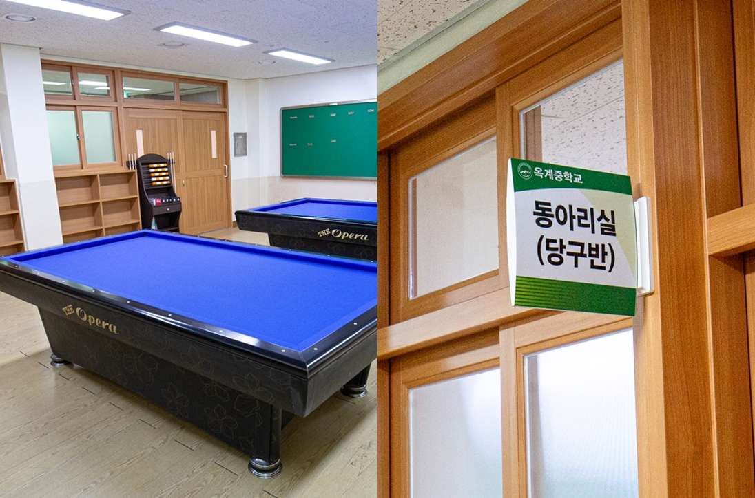 경북도 정치권, 당구계, 교육현장의 삼각 공조로 구미시 소재 옥계중학교(교장 정다연)에 학생들을 위한 ‘당구 동아리실’이 새롭게 문을 열었다.