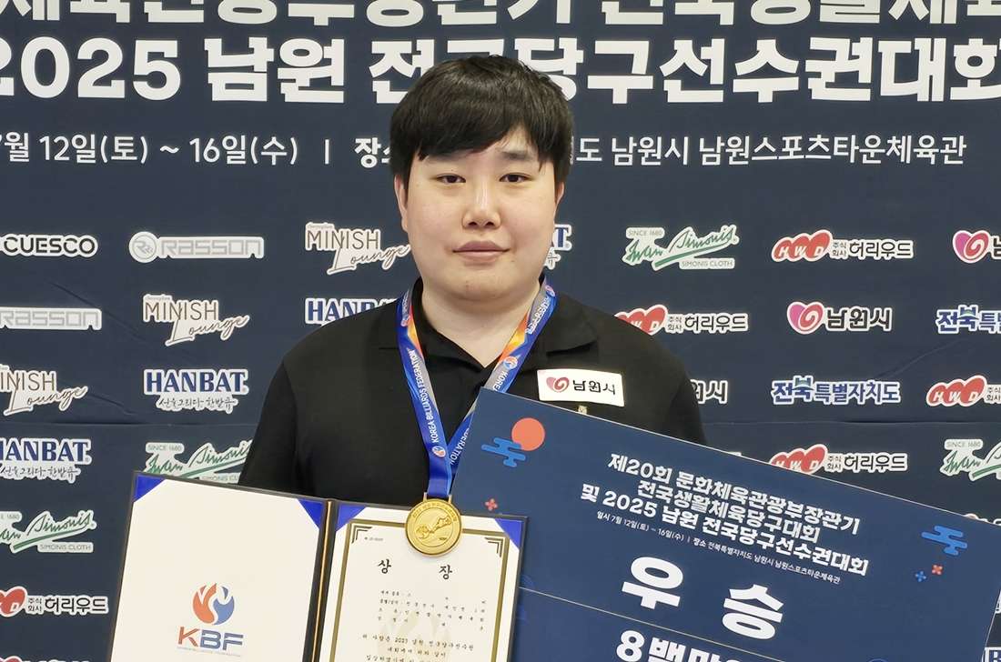 이대규는 15일 오후 ‘2025 남원 전국당구선수권대회’ 스누커 결승전에서 국내랭킹 1위 허세양(충남체육회)을 프레임스코어 3:2(80:45, 17:58, 42:54, 68:51, 62:39)로 꺾고 우승을 차지했다.