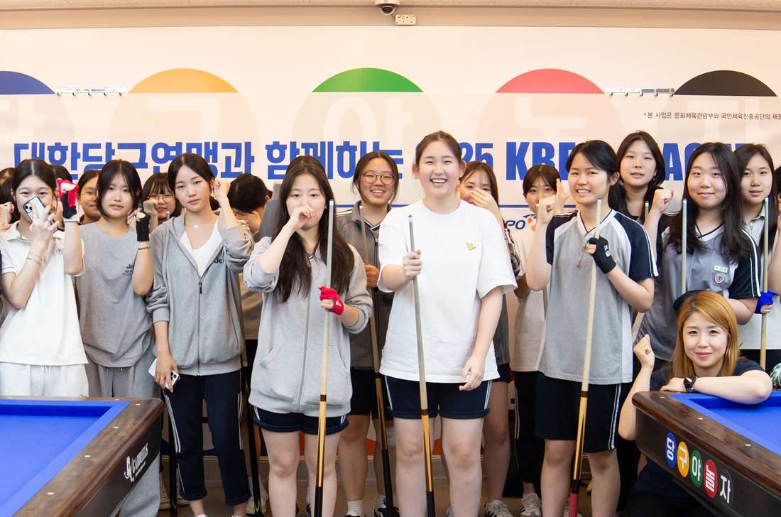 이는 서울 강남 8학군 내 진선여자중학교 학생들이 서울당구연맹(회장 유진희)의 지원 아래 참여한 ‘2025 KBF 유청소년클럽리그(이하 아이리그)’의 현장 풍경이다.