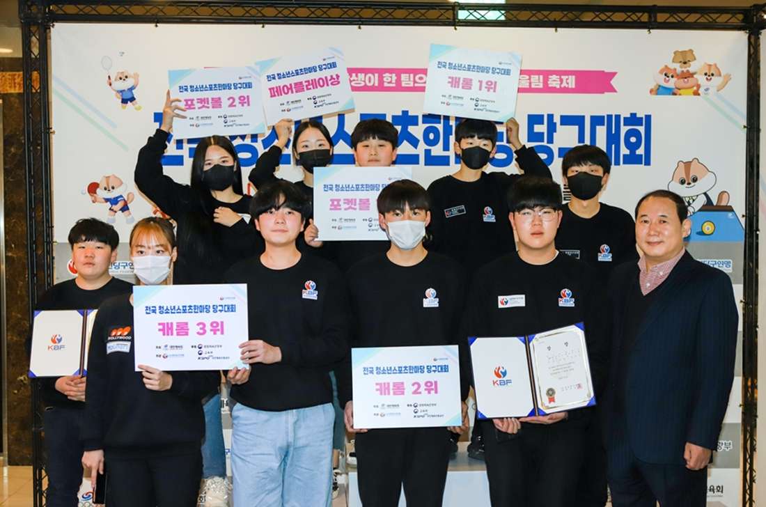 본지 필자인 이완수 인천광역시체육회 당구팀 감독은 이번 칼럼에서 90년 말~00년대 초반의 중흥기를 추억하면서 그 이후 서서히 쇠퇴해온 한국 포켓볼의 부활을 위해, 유-청소년 당구의 활성화를 제안했다. 사진은 지난 2023년 ‘전국 청소년 스포츠한마당 당구대회’ 당시 입상한 청소년 당구선수들. 사진=대한당구연맹