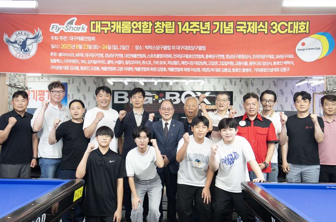 ‘동호인 당구의 심장부’라 불려온 대구. 그 맥을 14년 동안 이어온 대구캐롬연합회(회장 이인구)가 또 한 번 굵직한 발자취를 남겼다. 창립 14주년을 기념하는 국제식 3쿠션 대회가 지난 24~25일, 빅박스 당구클럽을 비롯한 관내 주요 클럽에서 성대하게 막을 올린 것이다.