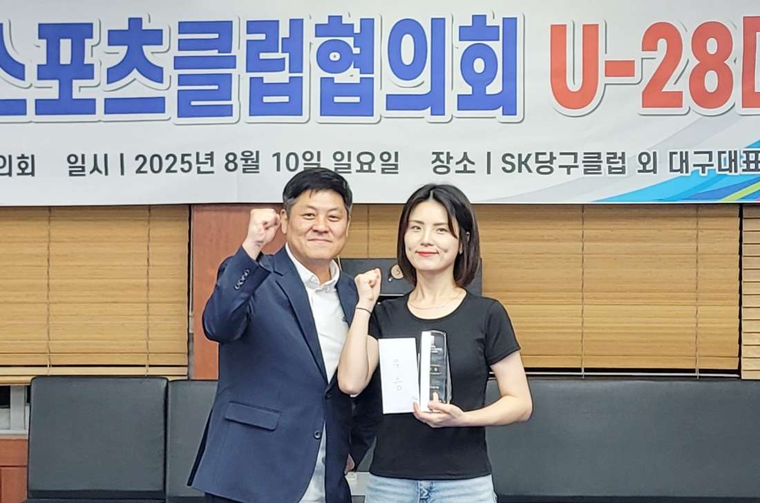 “올해 들어 슬럼프가 와서 힘들었습니다. 그래서 이번 U-28 대회에 너무 간절한 마음으로 나섰어요. 예선 1차전부터 긴장으로 속이 울렁거리고 손이 떨릴 정도였지만 결승까지 한 큐 한 큐 온 힘을 다했죠. 끝까지 지켜봐주며 응원해 준 내편(남편 윤대민 동호인), 항상 고마워”