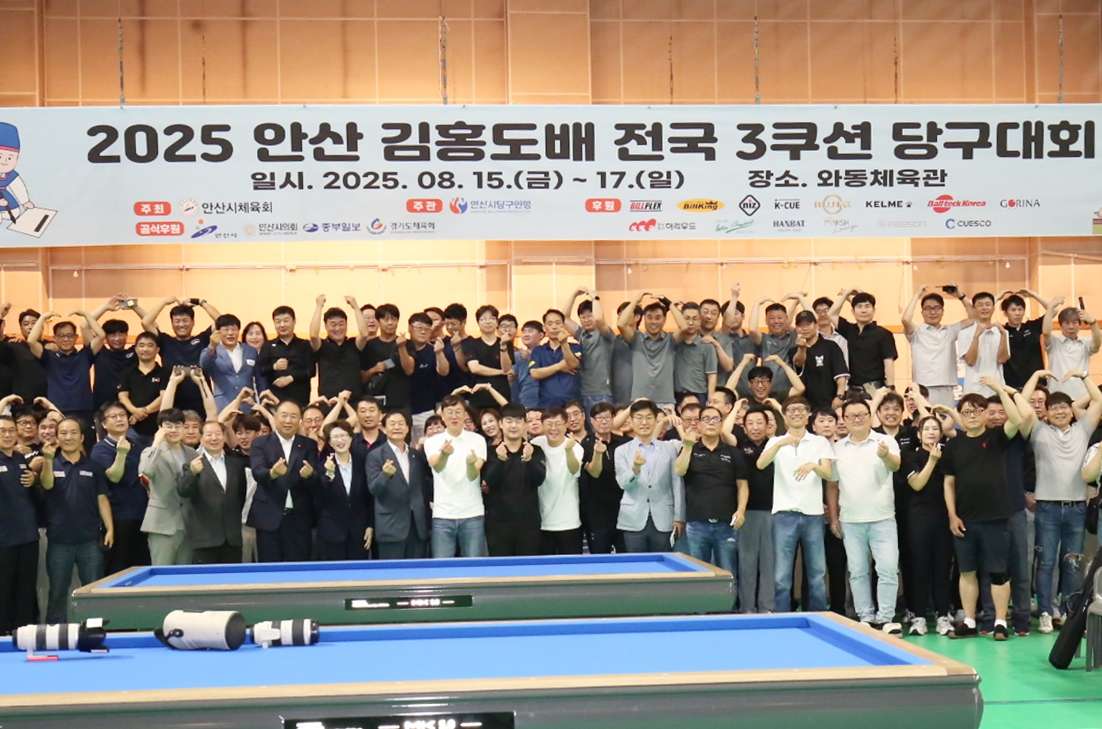 안산시당구연맹 사상 최초의 체육관 전국대회, ‘2025 안산 김홍도배 전국3쿠션 당구대회’(김홍도배)가 대회 일정 종반부에 접어든 16일 오전 9시, 안산시 와동체육관에서 개회식을 가졌다.