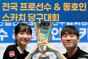 [대회 현장에서] 안동시장배 3쿠션 복식전으로 스타트! ‘찰떡 호흡’ 김행직-최호타(전남), 64강전서 Avg 2.273 기록하며 우승 정조준! 2026/ 04/ 15 댓글 없음 Read More »
