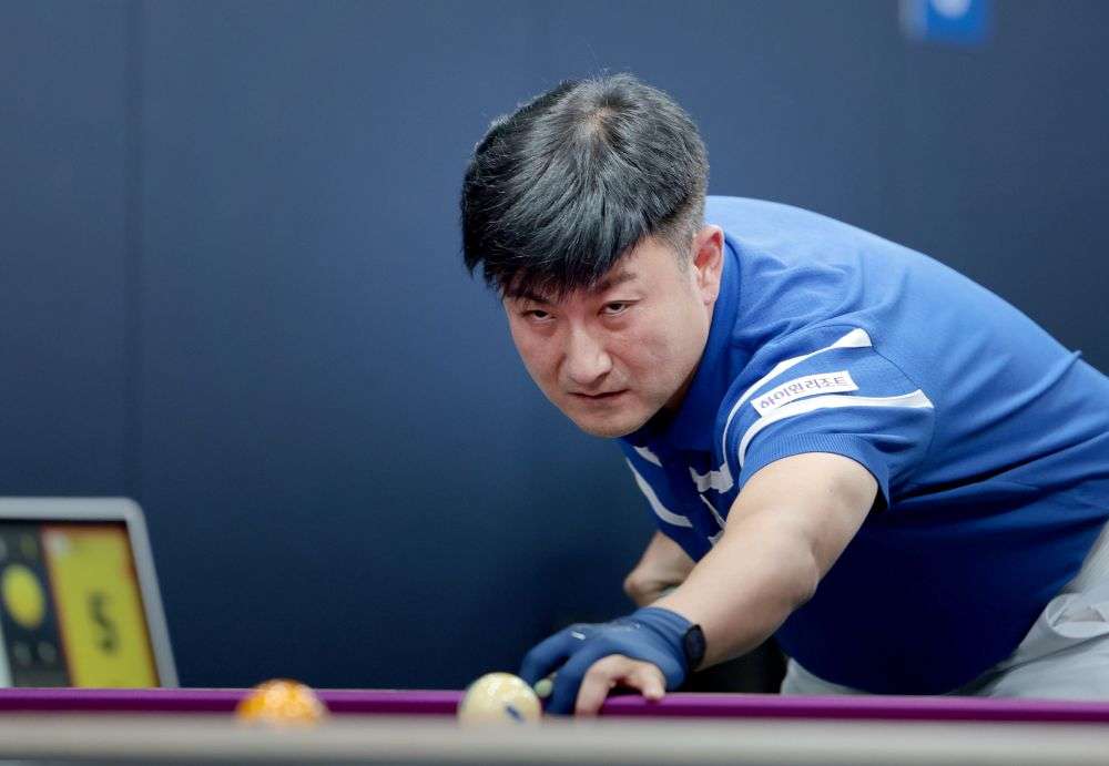 ‘한국 3쿠션 차세대 간판’ 김준태(하림)가 ‘미스터 매직’ 세미 사이그너(튀르키예·웰컴저축은행)를 제압하고 32강 진출에 성공했다.